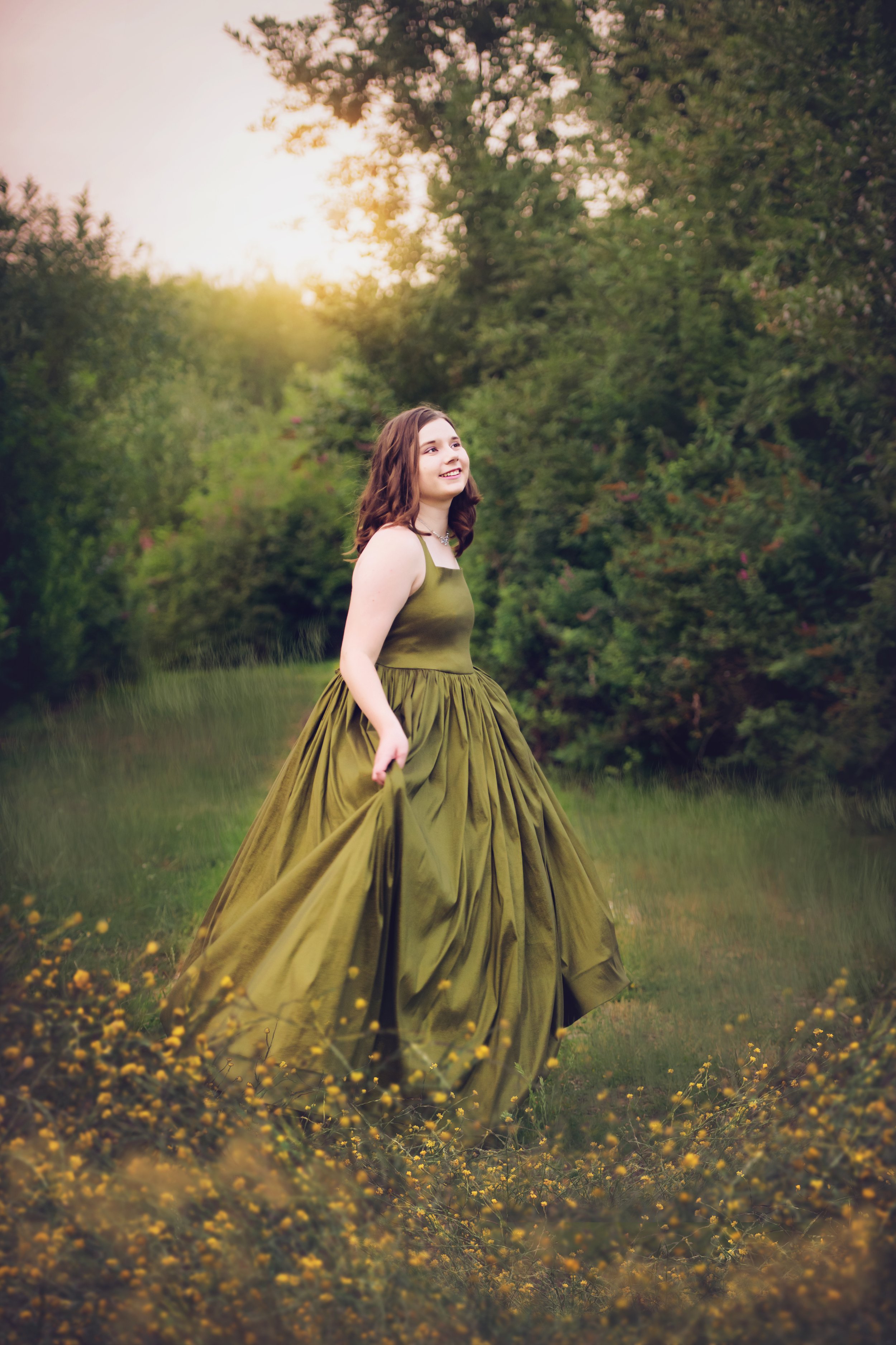 Olive Green Taffeta Hadley Dress by Little Dreamers Tutus- Size 14/16