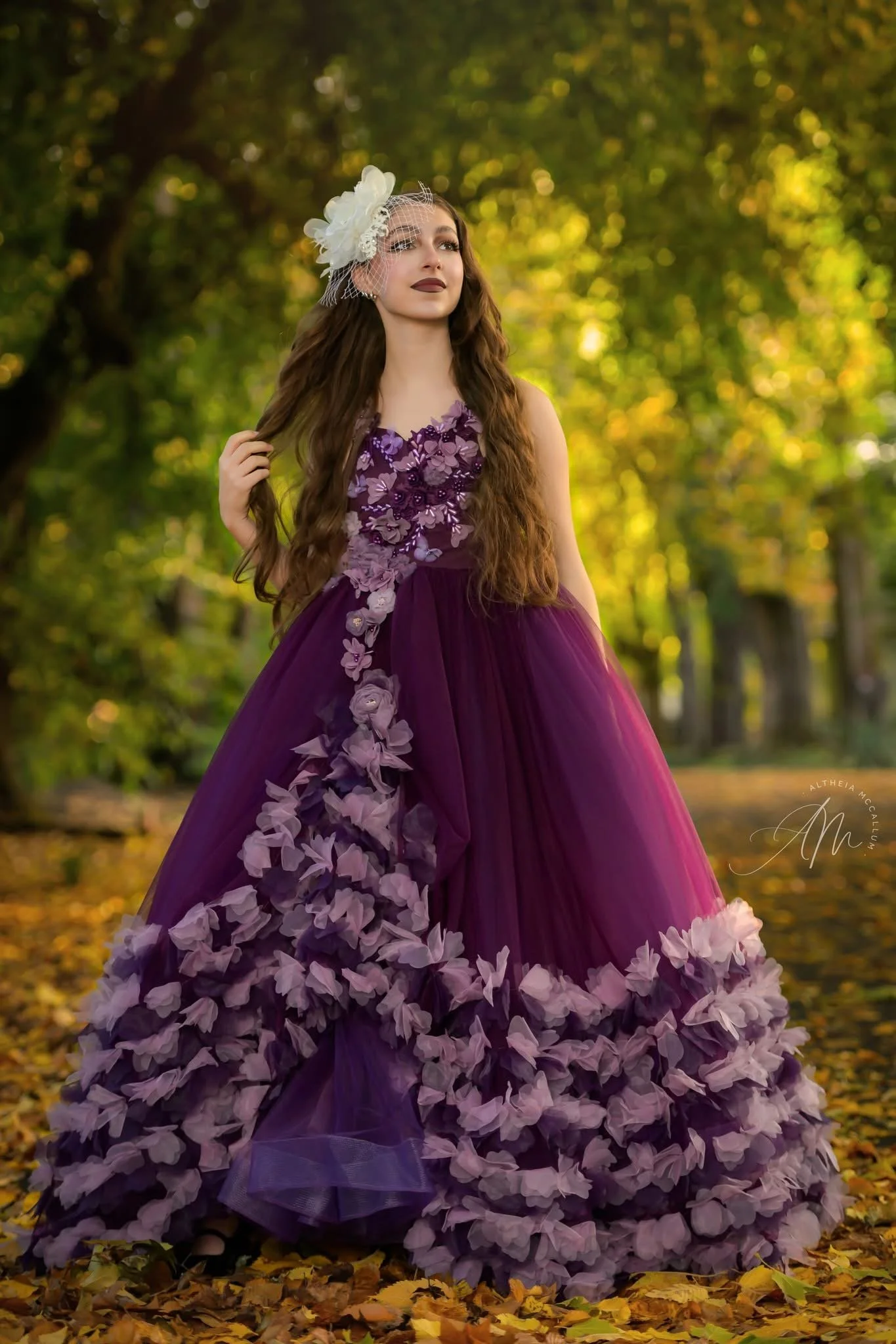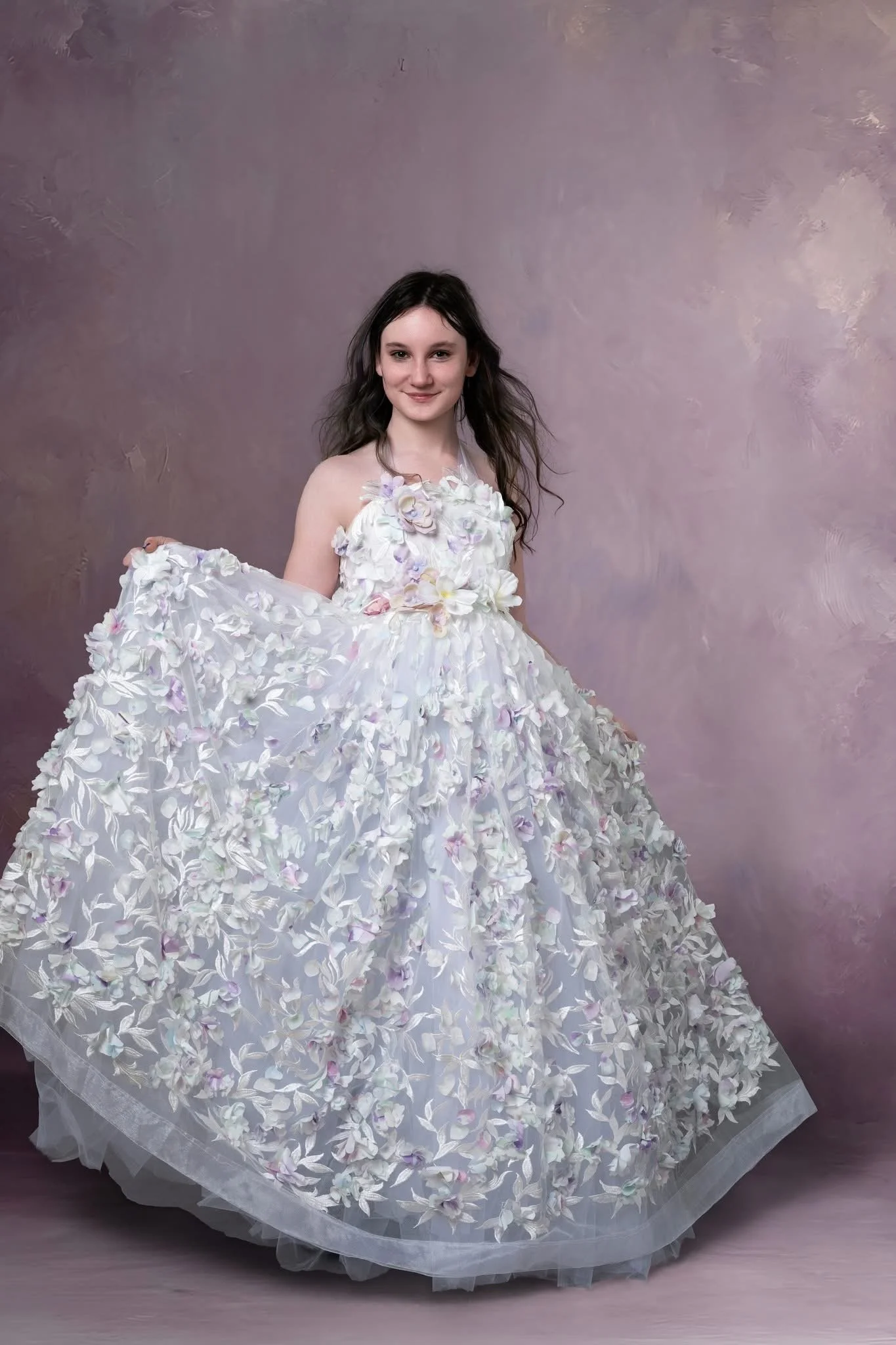 White and Lavender 3D Floral Dress -size 8-14