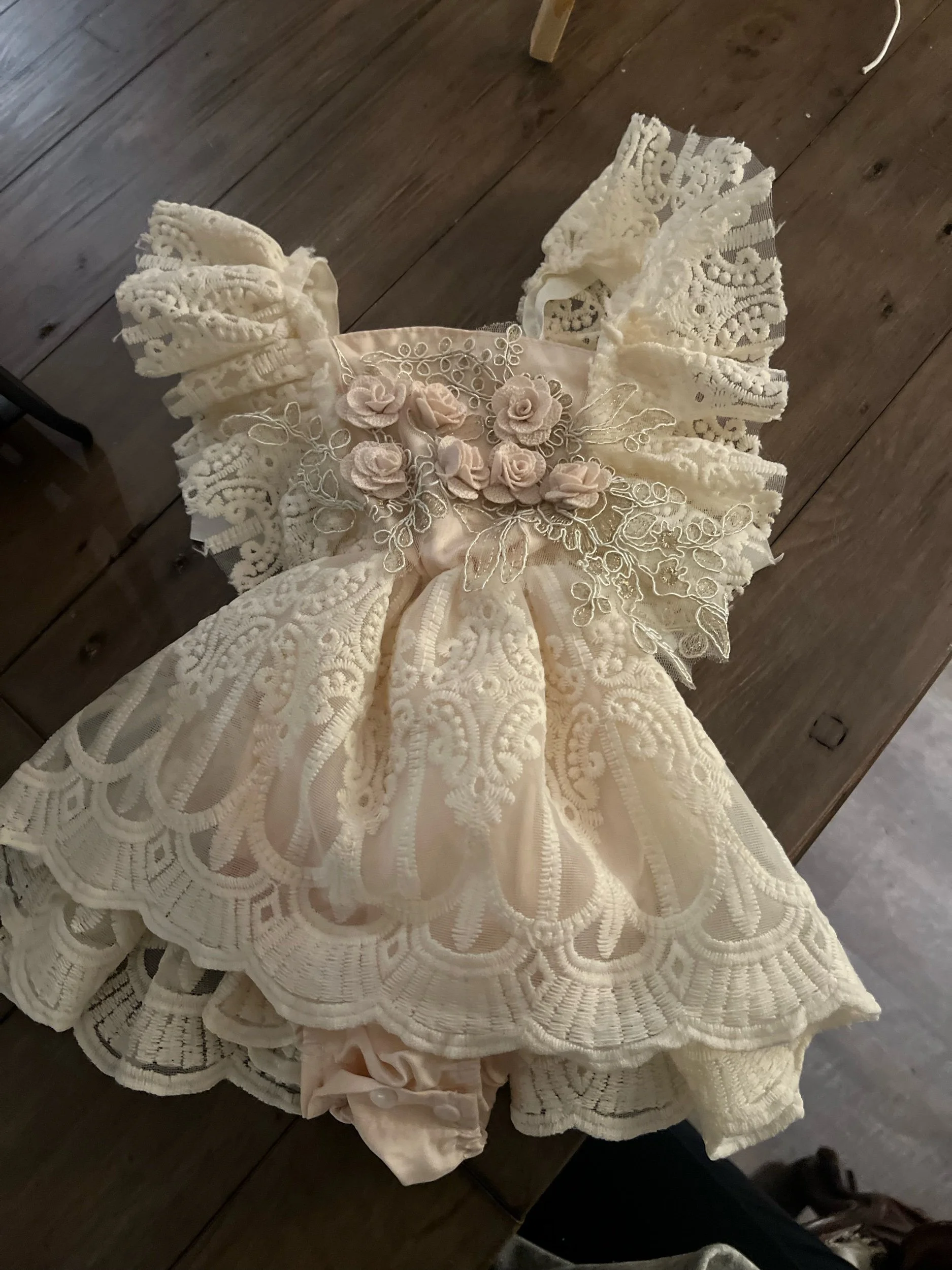 Cream lace romper- fits 3 months - one year